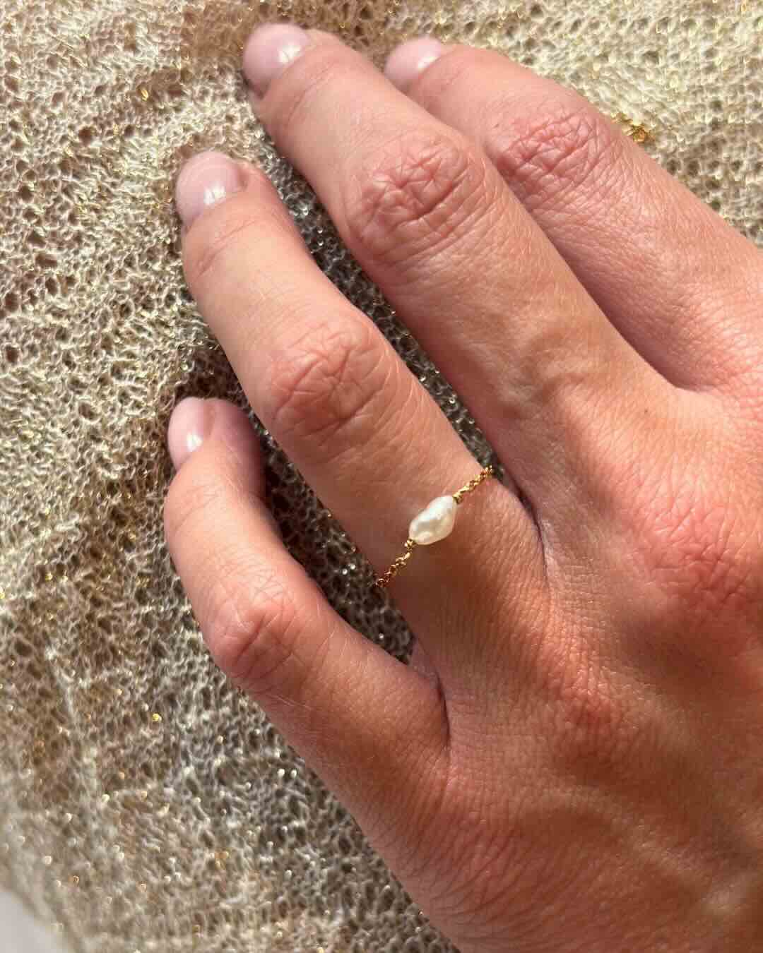 Originale et minimaliste, la bague chaînette EDEN est un précieux intemporel et nous parions qu'elle ne quittera plus votre doigt ! Sa perle Keshi de Tahiti, véritable diamant de l'océan, est délicatement nouée au fil d'or sur une chaîne ultra-fine pour créer une pièce moderne d'une élégance rare. Chaque perle est unique, captant la lumière pour révéler son éclat et son lustre naturel au contact de votre peau.